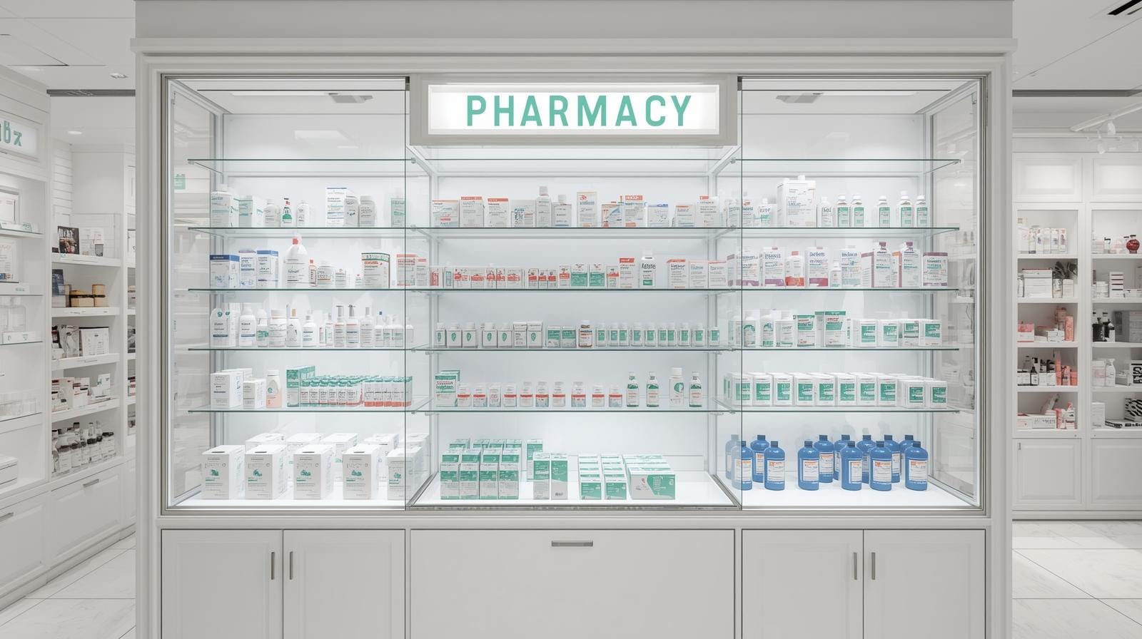 Nhà thuốc: chứa dược phẩm, thực phẩm chức năng, dụng cụ y tế.