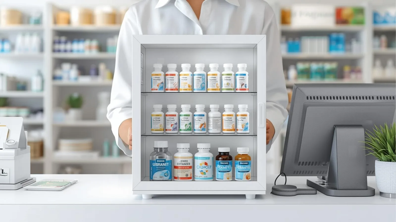 Tủ nhựa 3–4 tầng: cao 100–140cm, dùng trong siêu thị hoặc nhà thuốc.